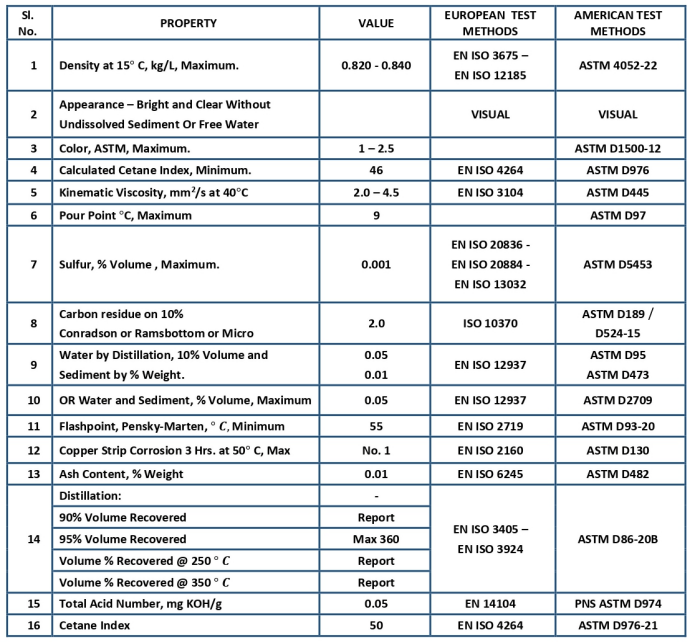EN590 describes the Physical Properties that all Automotive Diesel Fuel MUST MEET if it is to be sold in the European Union, Croatia, Iceland, Norway and Switzerland.